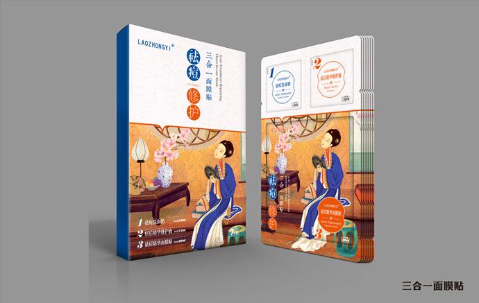 祛痘兩個(gè)字放的位置比較明顯,這樣既闡述了產(chǎn)品的功能又很快的吸引了顧客的眼球,旁邊加以小子輔助說(shuō)明了產(chǎn)品的具體特性,將祛痘的功能表現(xiàn)了出來(lái)。愛美之心人皆有之,包裝盒上是一個(gè)古代女子坐在閨房?jī)?nèi)照鏡子,給人一種古典美。宮廷多秘方,以古代美人為畫面可以使人聯(lián)想更多。祛痘洗面奶、祛痘修護(hù)液、祛痘修護(hù)霜瓶子材料包裝設(shè)計(jì)上采用瓷感白,給人一種白凈清爽的感覺仿佛如美人的臉一樣白皙干凈,同時(shí)瓶子設(shè)計(jì)的很精致給人一種高貴典雅的美感。